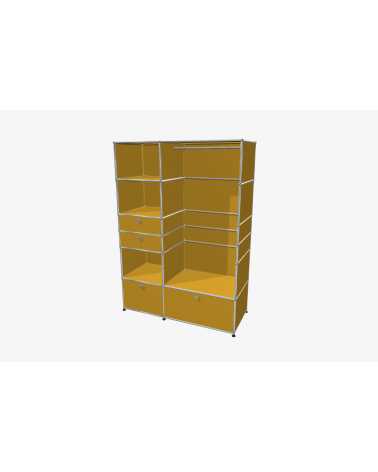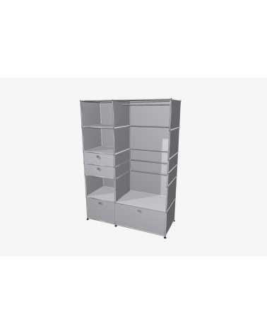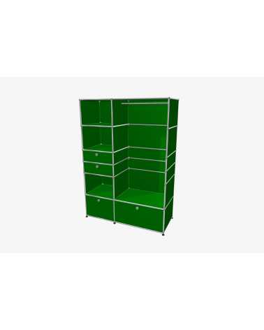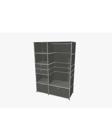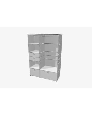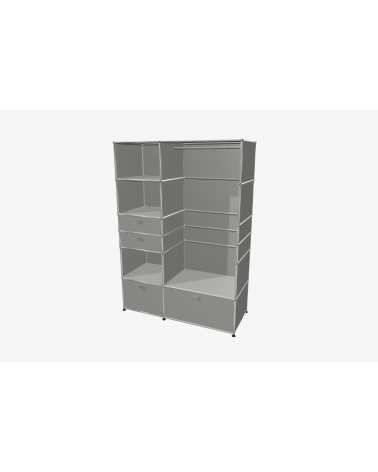USM Haller Möbel stehen für zeitloses Design und maximale Flexibilität. Jedes Möbelstück besteht aus drei zentralen Komponenten: stabilen Metallrohren für die Struktur, hochwertigen Metalltablaren als Verkleidung und der charakteristischen verchromten Kugel, die alles verbindet. Diese minimalistische Bauweise ermöglicht grenzenlose Gestaltungsfreiheit und bietet Möbel, die perfekt auf Ihre individuellen Bedürfnisse abgestimmt sind – sogar nachträgliche Anpassungen oder Umbauten sind problemlos möglich.